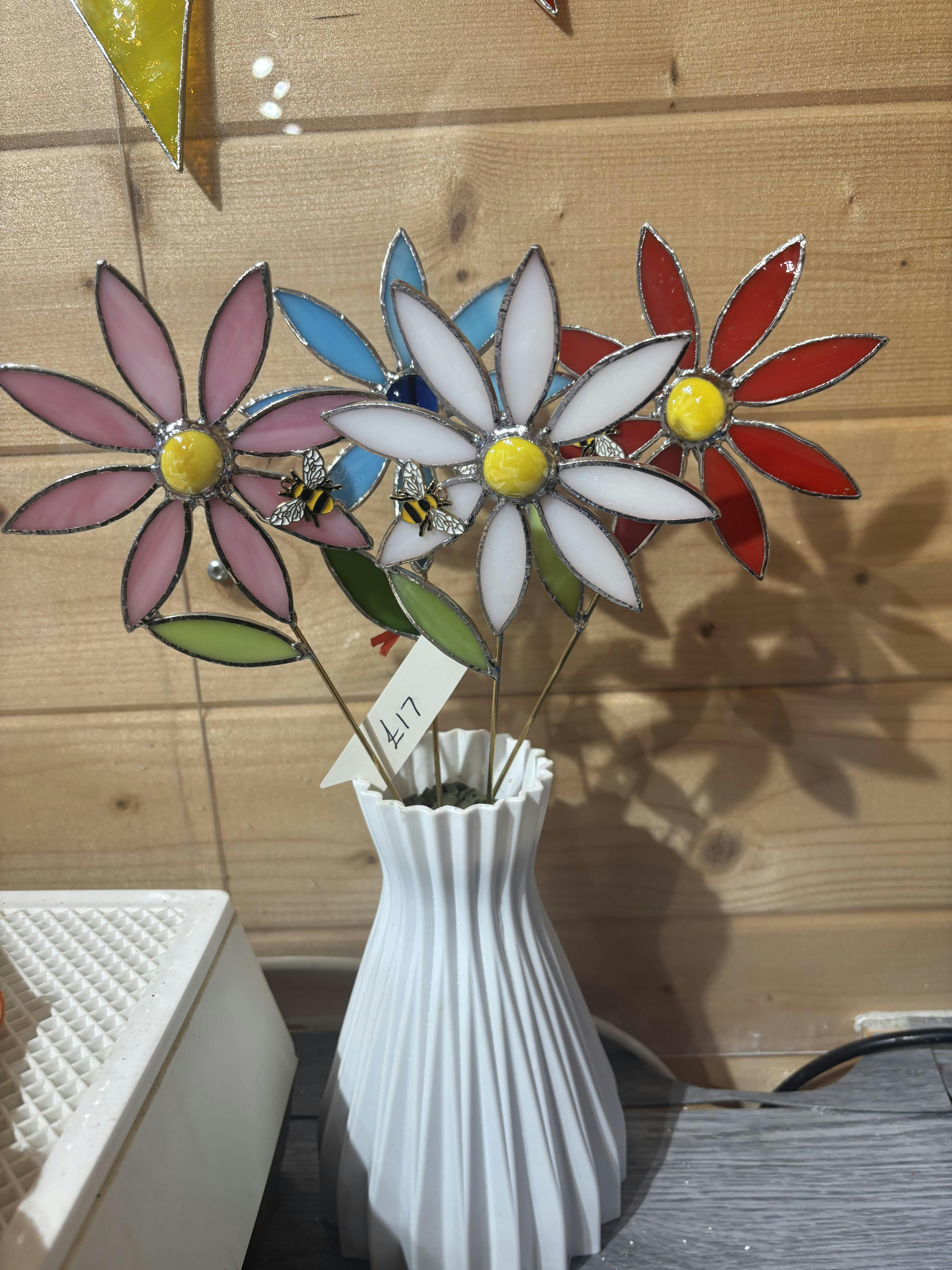 - Hand cut from stained Glass
